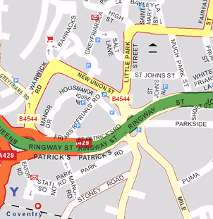 - Follow Signs to Coventry City Centre from your starting Destination (Example Route: Birmingham-->Coventry). The AA's route planner may be of help.